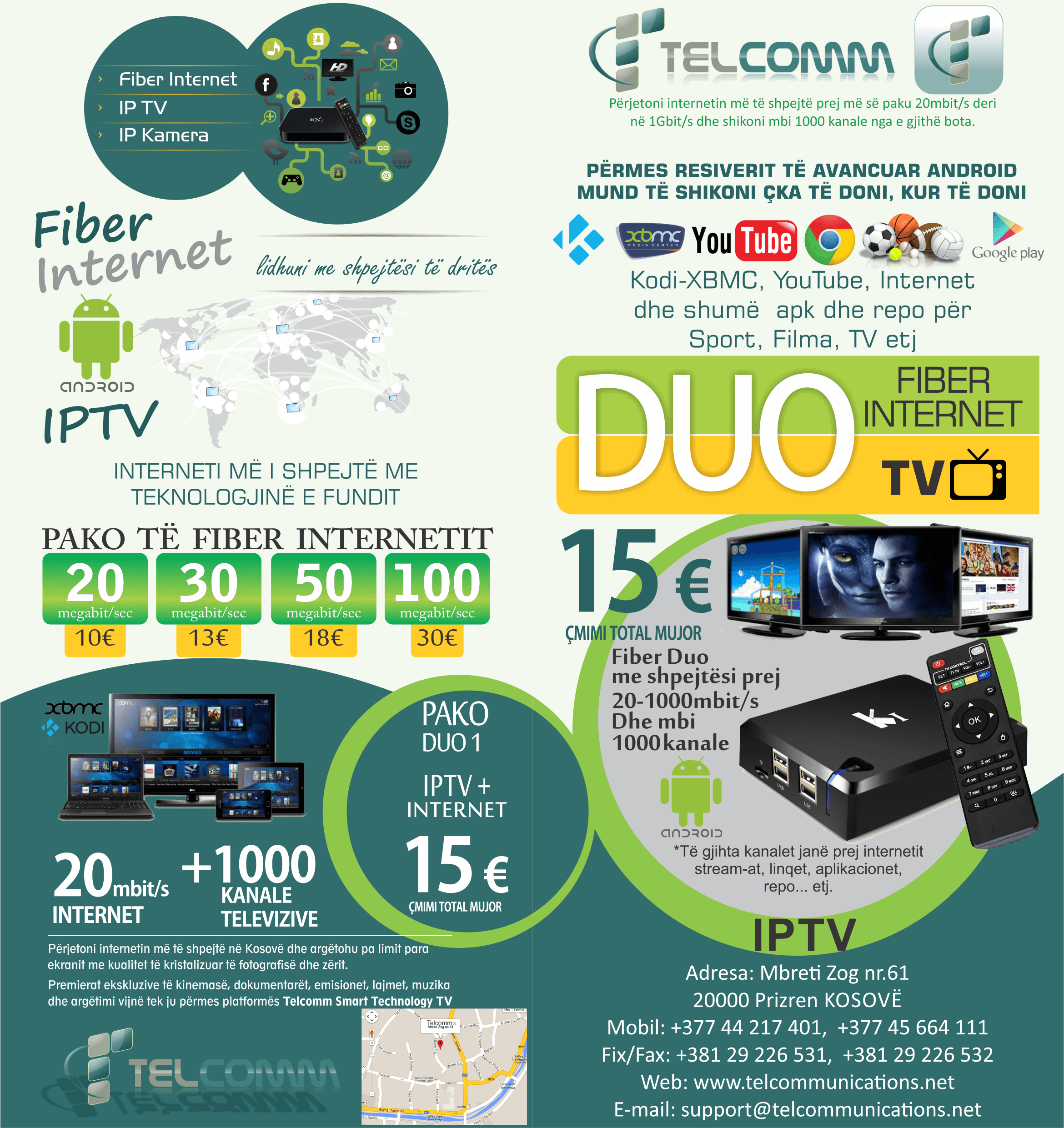Telcommunications ju sjell një ofertë tejet të dobishëm për një shumë të arsyetueshëm. INTERNET PAKO 2! Konsumator të nderuar, me të zgjedhur këtë pako do të...